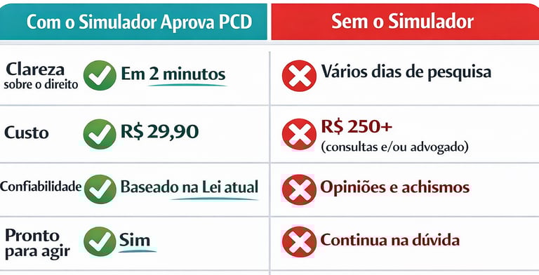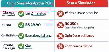 Em menos de 2 minutos, você descobre se tem direito ao desconto PCD — sem achismo e sem enrolação.